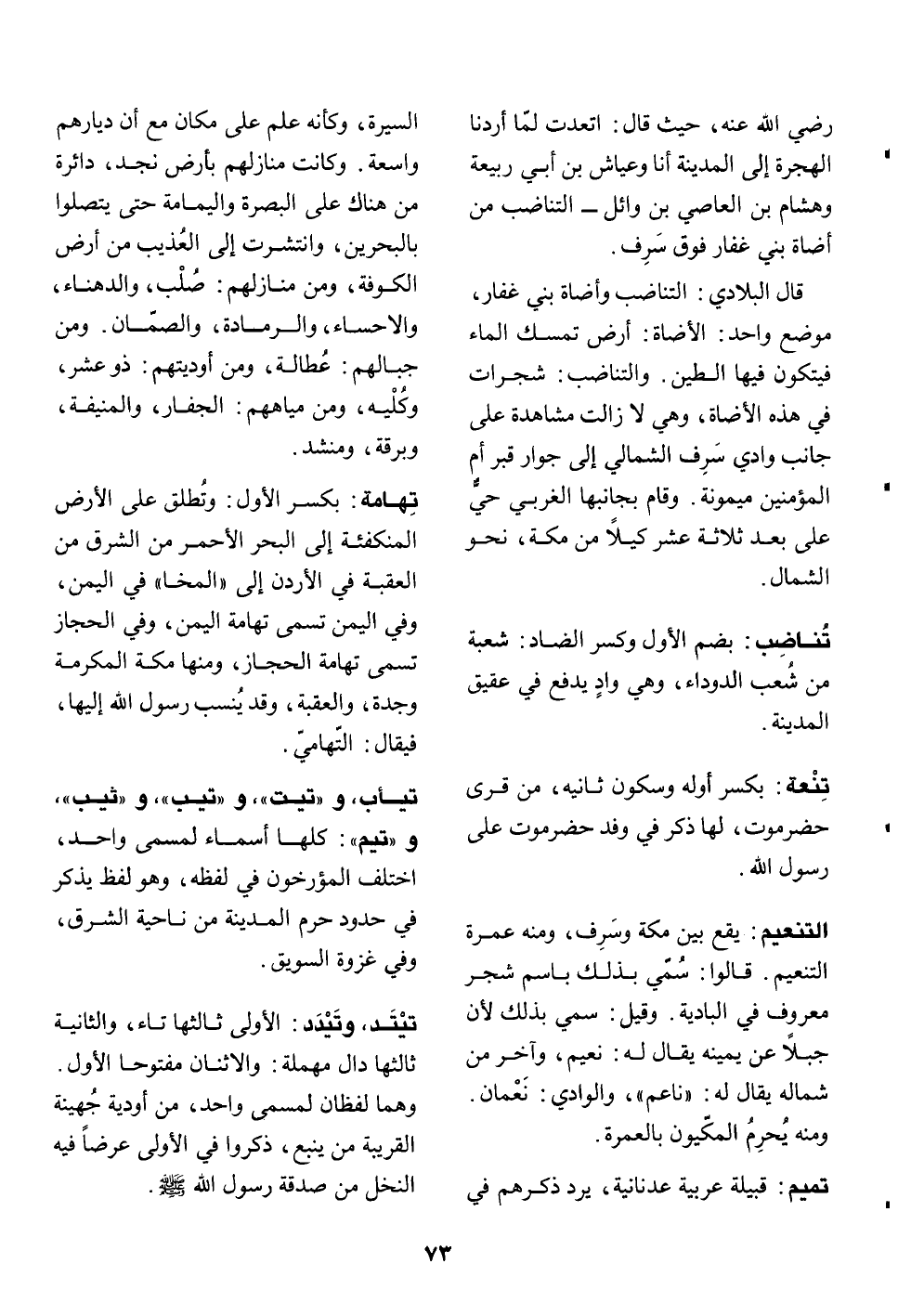 رضي الله عنه، حيث قال: اتعدت لمّا أردنا الهجرة إلى المدينة أنا وعياش بن أبي ربيعة وهشام بن العاصي بن وائل- التناضب من أضاة بني غفار فوق سرف.