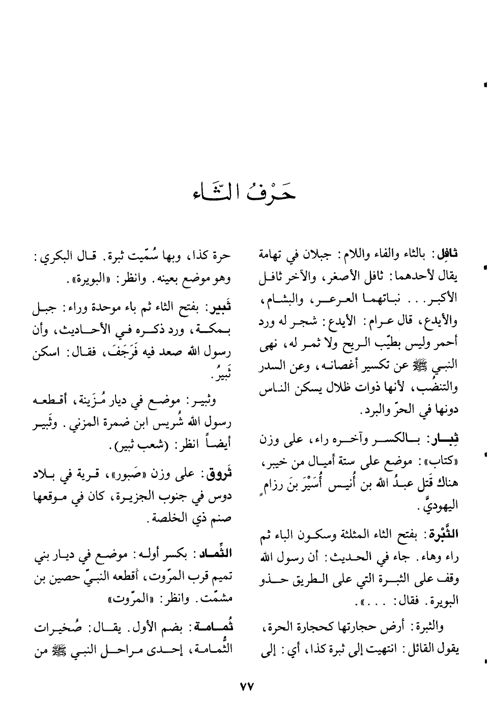 . جاء في الحديث: أن رسول الله وقف على الثبرة التي على الطريق حذو البويرة. فقال: ... » .