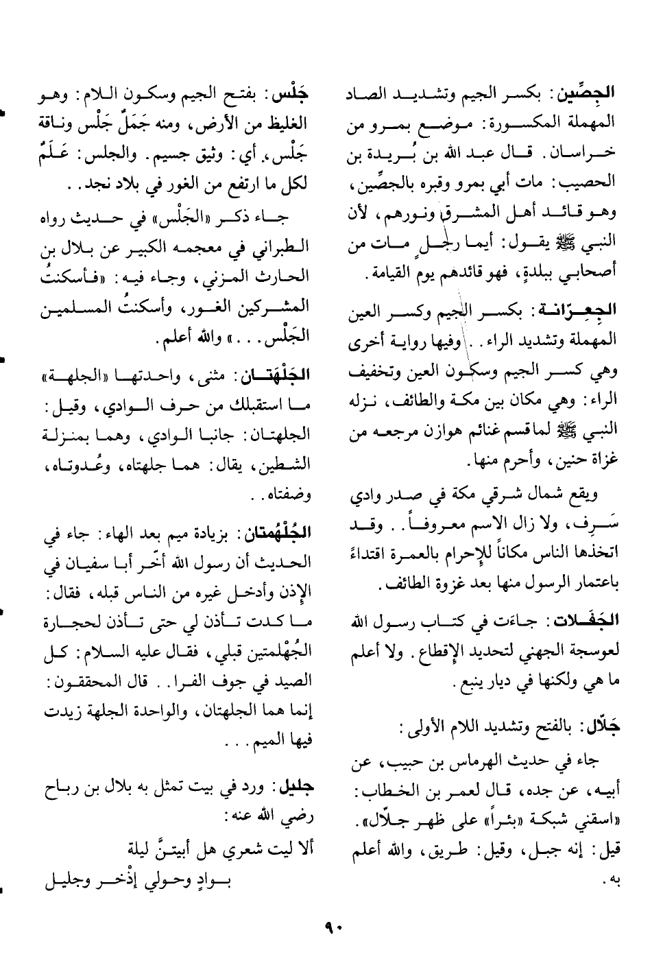 مثنى، واحدتها «الجلهة» ما استقبلك من حرف الوادي، وقيل: