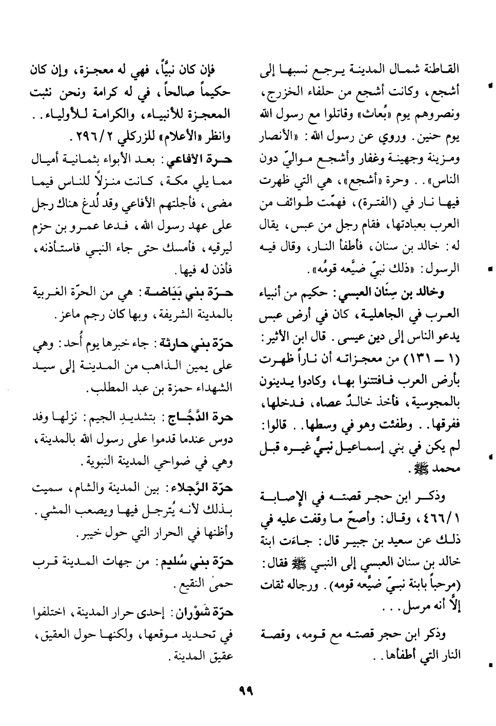 (1- 131) من معجزاته أن نارا ظهرت بأرض العرب فافتتنوا بها، وكادوا يدينون بالمجوسية، فأخذ خالد عصاه، فدخلها، ففرقها.. وطفئت وهو في وسطها.. قالوا: