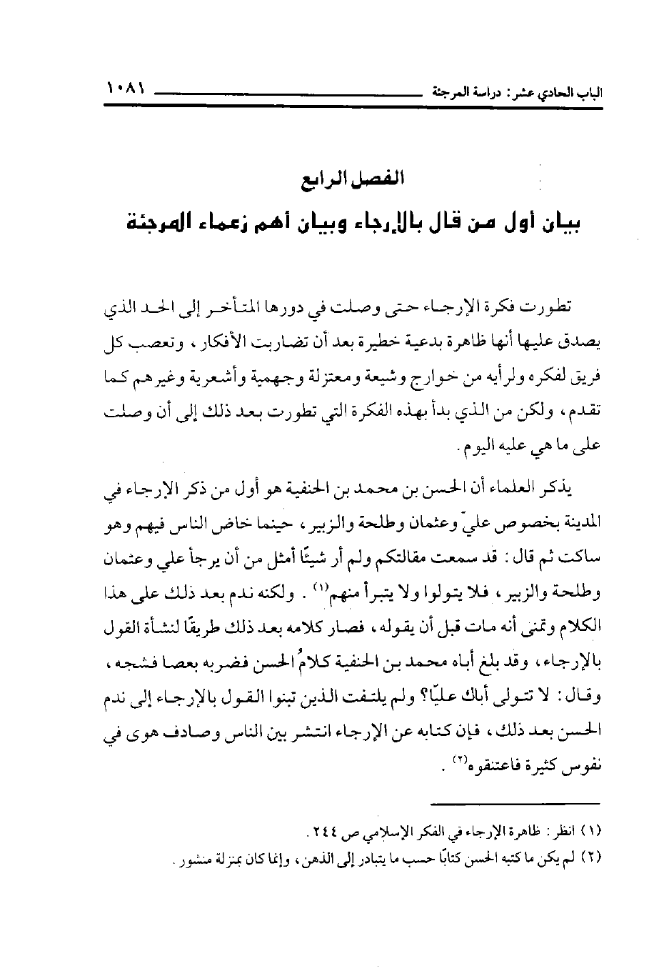 (¬1) انظر: ظاهرة الإرجاء في الفكر الإسلامي ص 244.