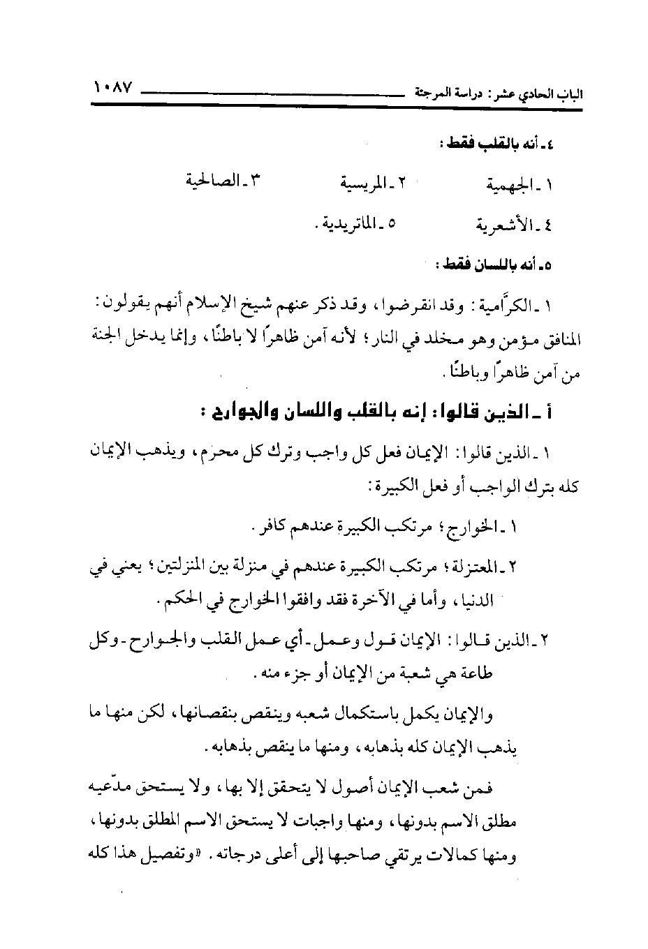 أ- الذين قالوا: إنه بالقلب واللسان والجوارح: