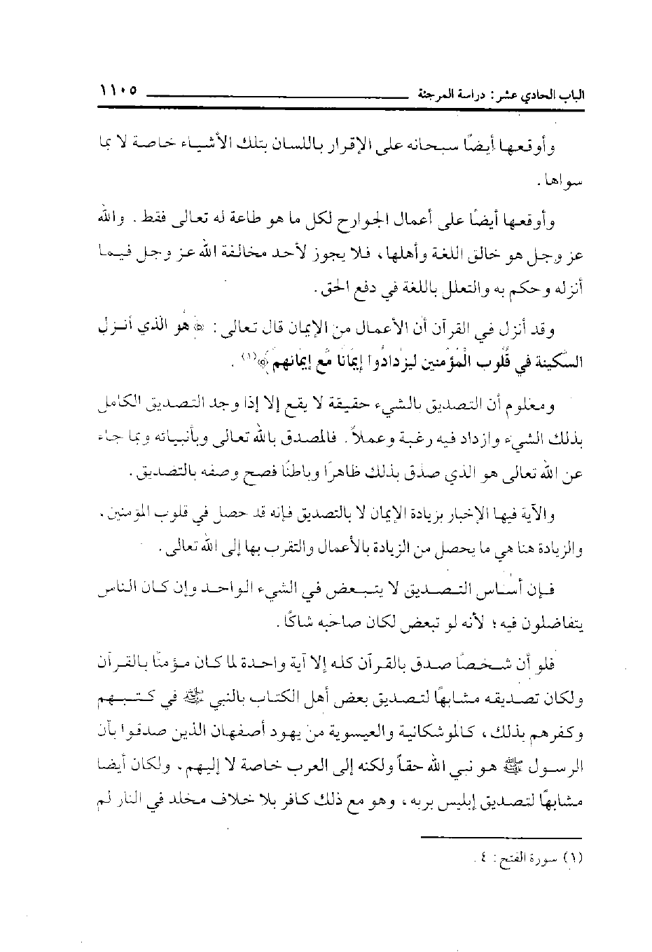 فإن أساس التصديق لا يتبعض في الشيئ الواحد وإن كان الناس يتفاضلون فيه؛ لأنه لو تبعض لكان صاحبه شاكاً.