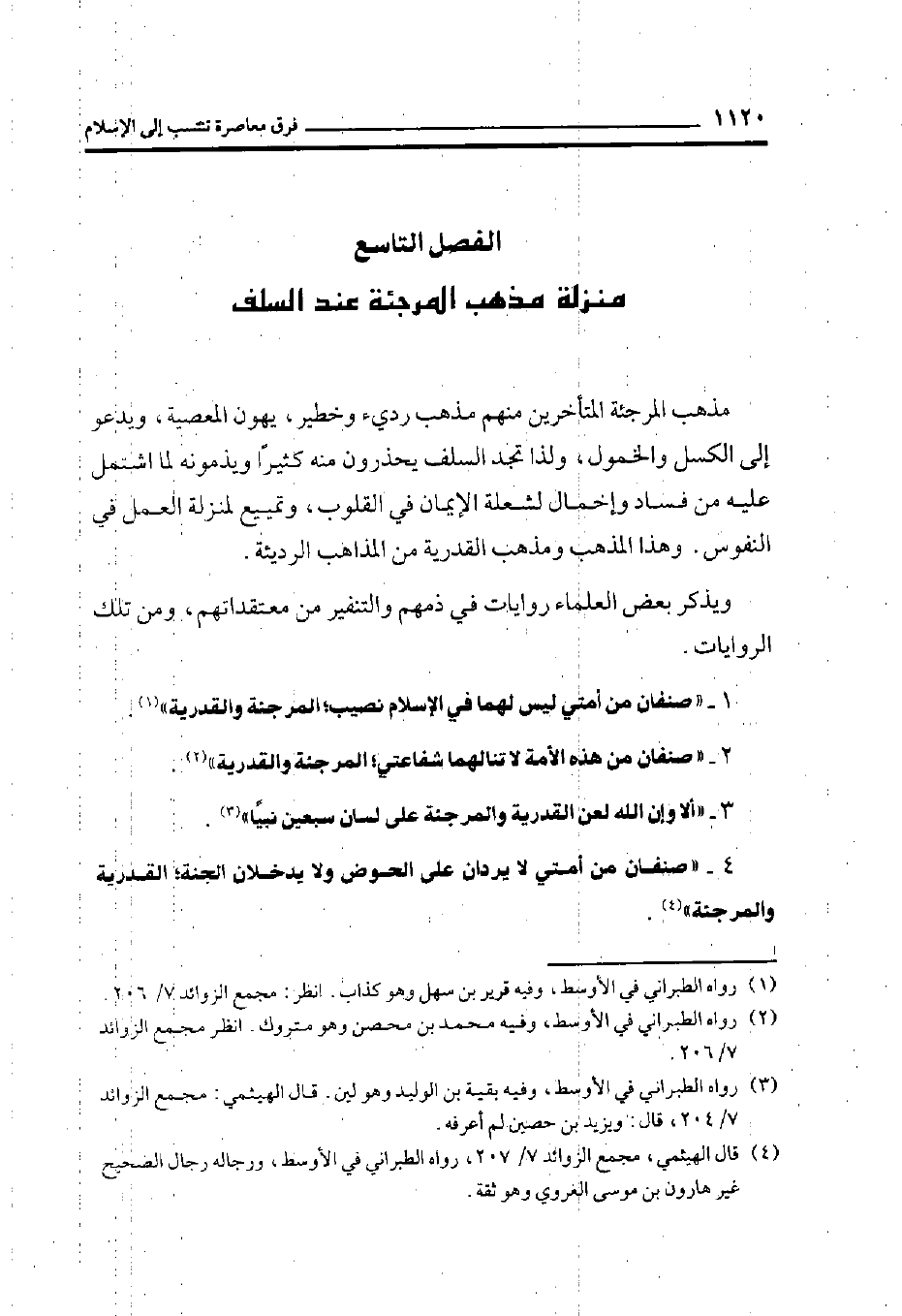 1-"صنفان من أمتي ليس لهما في الإسلام نصيب؛ المرجئة والقدرية" (¬1) .