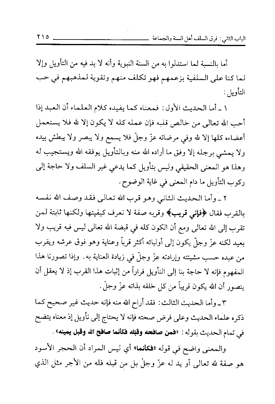 أما بالنسبة لما استدلوا به من السنة النبوية وأنه لابد فيه من التأويل وإلا لما كنا على السلفية بزعمهم فهو تكلف منهم وتقوية لمذهبهم في حب التأويل:
