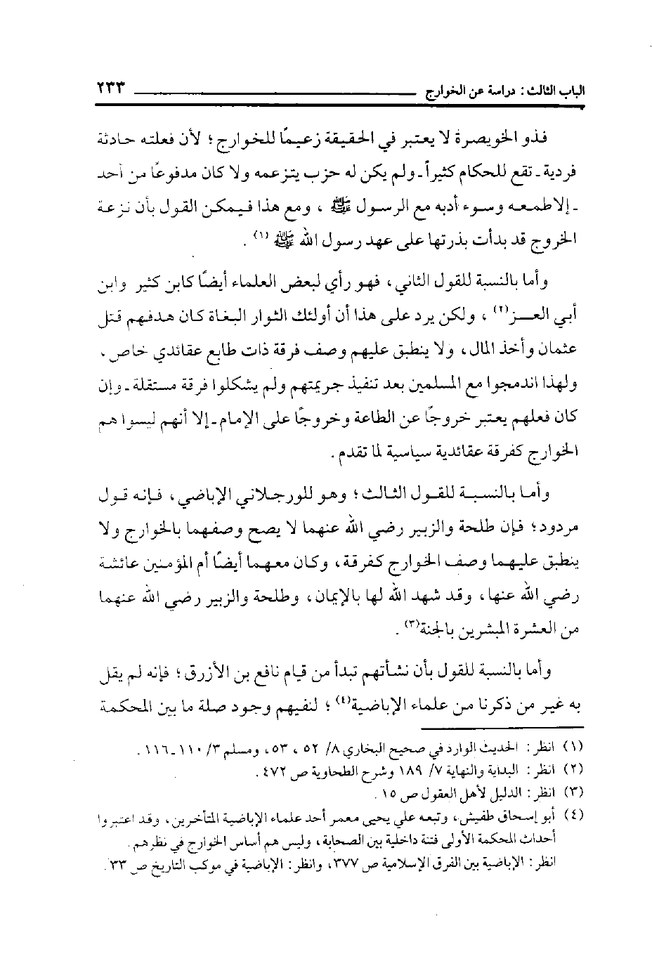 (¬4) أبو إسحاق طفيش وتبعه على يحيى معمر أحد علماء الأباضية المتأخرين وقد اعتبروا أحداث المحكمة الأولى قتنة داخلية بين الصحابة وليس لهم أساس الخوارج في نظرهم.
