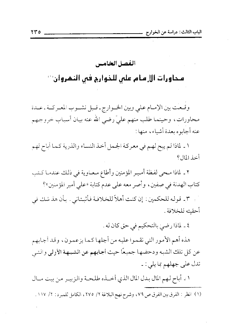 (¬1) انظر: الفرق بين الفرق ص 79، وشرح نهج البلاغة 2/ 275، الكامل للمبرد: 2/ 117.