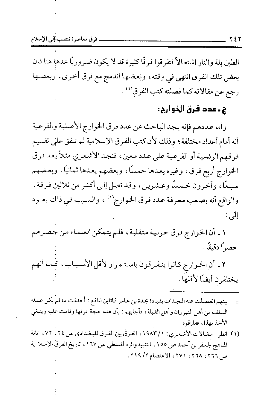 (¬2) انظر مقالات الأشعري: 1 / 1983، الفرق بين الفرق للبغدادي ص 24، 72، أبانة المناهج لجعفر بن أحمد ص 155، التنبيه والرد للملطي ص 167، تاريخ الفرق الإسلامية ص 266، 271 الاعتصام: 2/ 219) .