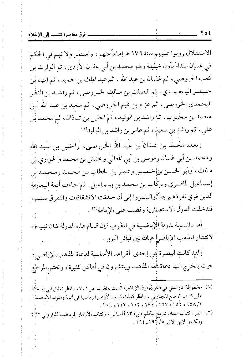 (¬2) انظر كتاب ((عمان تاريخ يتكلم)) ص 131 للسالمي، وكتاب ((الأزهار الرياضية للباروني)) : 2/ 2 والكامل لابن الأثير: 5/ 192 - 194.