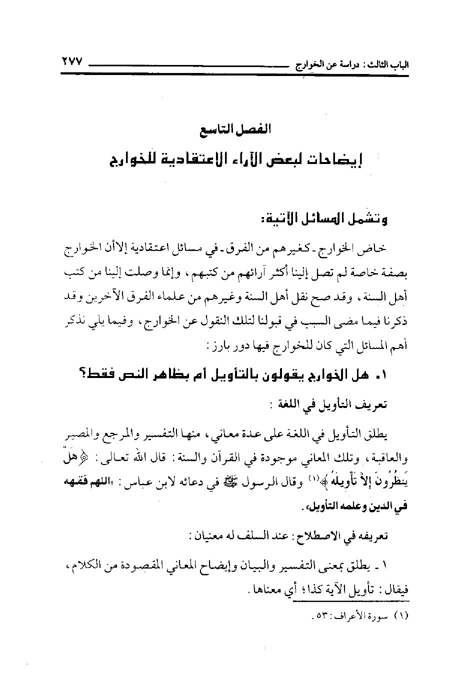 1- هل الخوارج يقولون بالتأويل أم بظاهر النص فقط