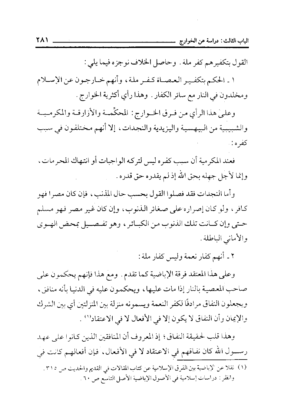 (¬1) نقلاً عن الأباضية بين الفرق الإسلامية عن كتاب المقالات في القديم والحديث ص 315 وانظر دراسات إسلامية في الأصول الأباضية. الأصل التاسع ص 60.