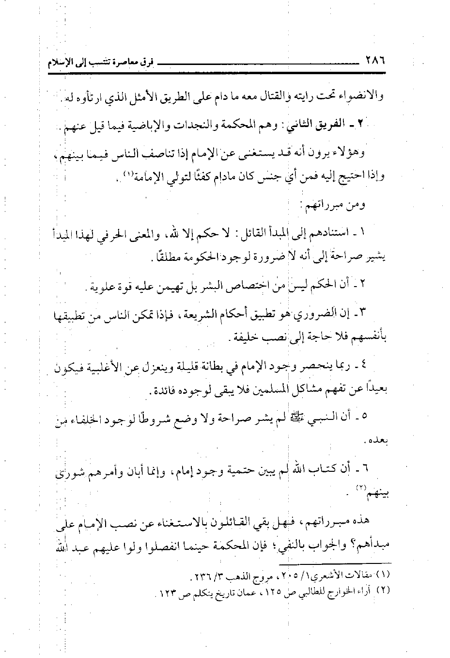 هذه مبرراتهم بالنفي، فهل بقى القائلون بالاستغناء عن نصب الإمام على مبدأهم؟ والجواب بالنفي فإن المحكمة حينما انفصلوا ولو عليهم عبد الله