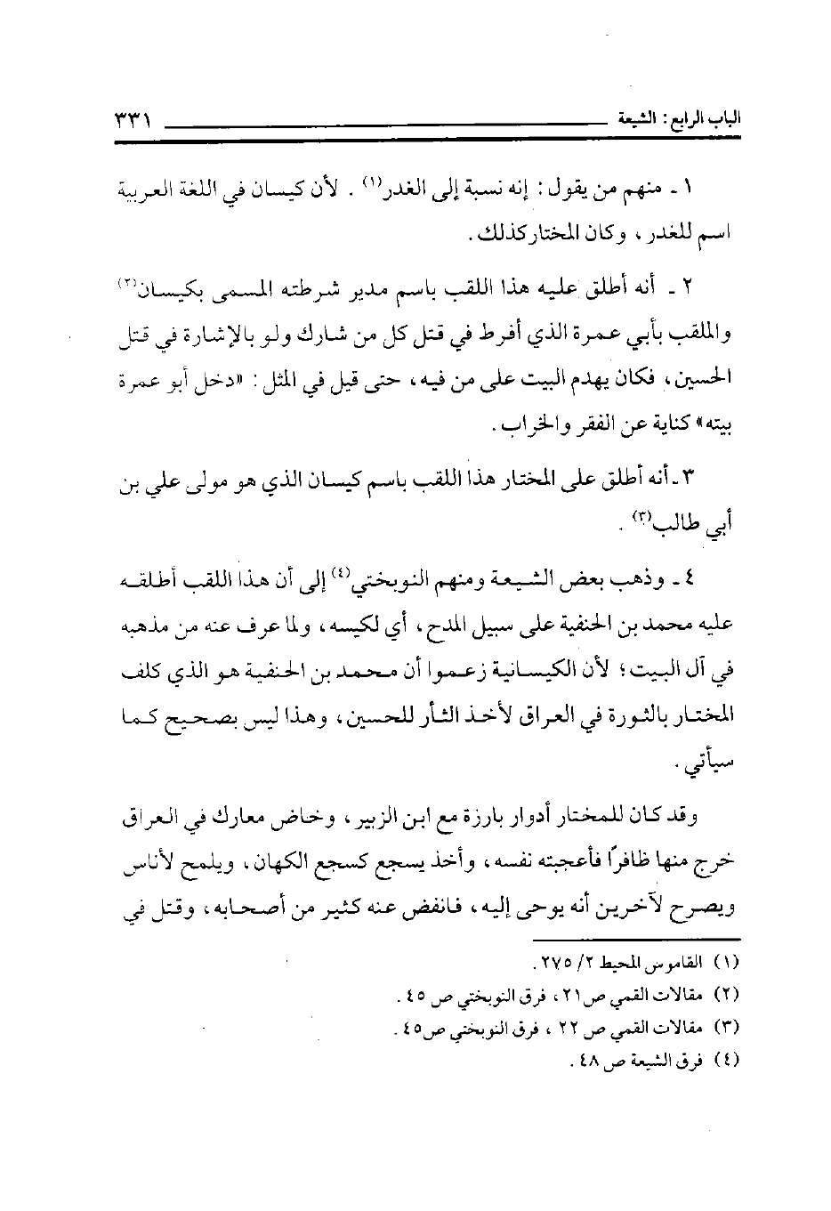 1- منهم من يقول: إنه نسبة إلى الغدر (¬1) ، لأن كيسان في اللغة العربية اسم للغدر، وكان المختار كذلك.