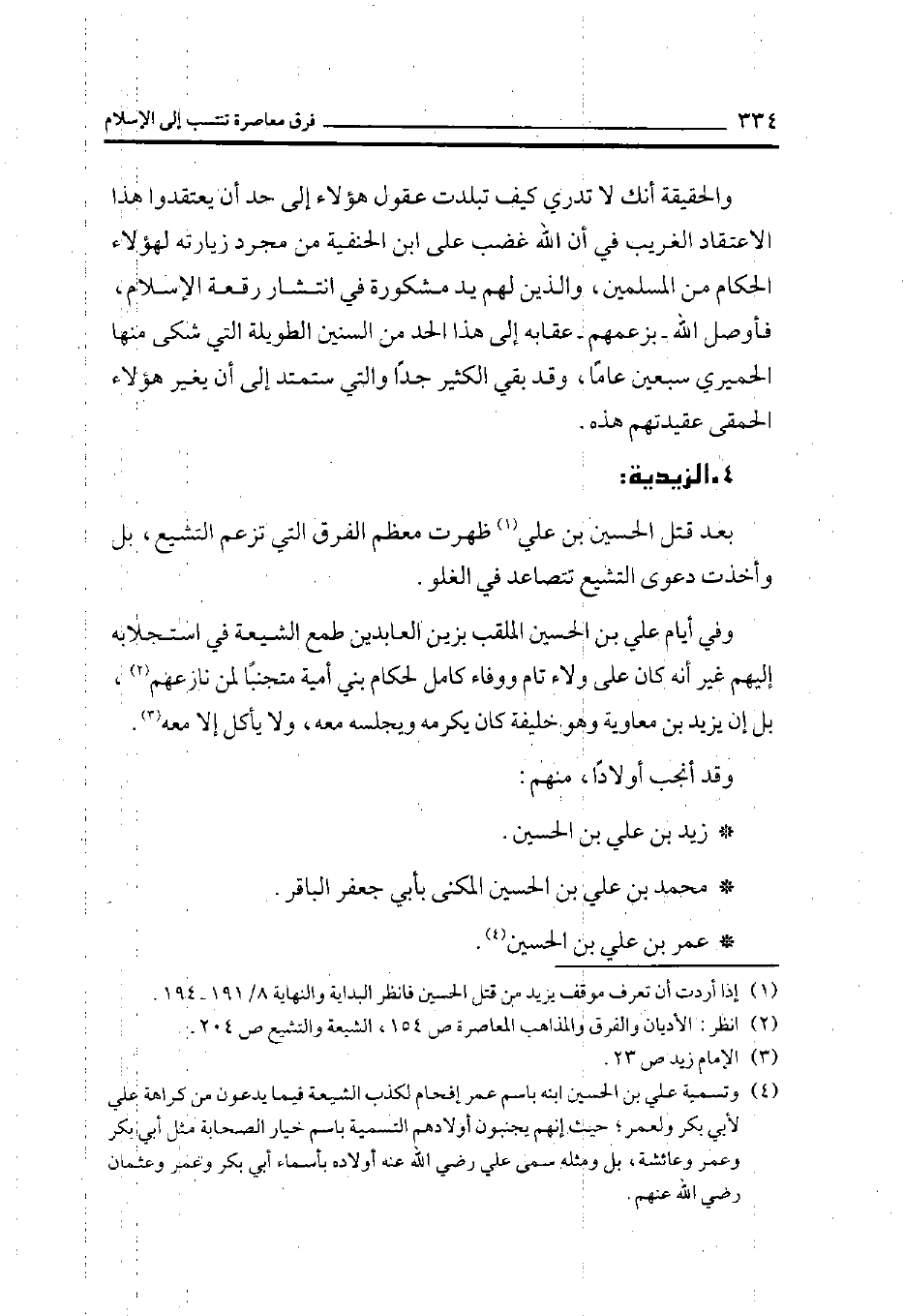 (¬4) وتسمية علي ابن الحسين ابنه باسم عمر إفحام لكذب الشيعة فيما يدعون من كراهة علي لأبي بكر ولعمر، حيث إنهم يجنبون أولادهم التسمية باسم خيار الصحابة مثل أبو بكر وعمر وعائشة. بل ومثله سمى علي رضي الله عنه أولاده بأسماء أبي بكر وعمر وعثمان رضي الله عنهم.