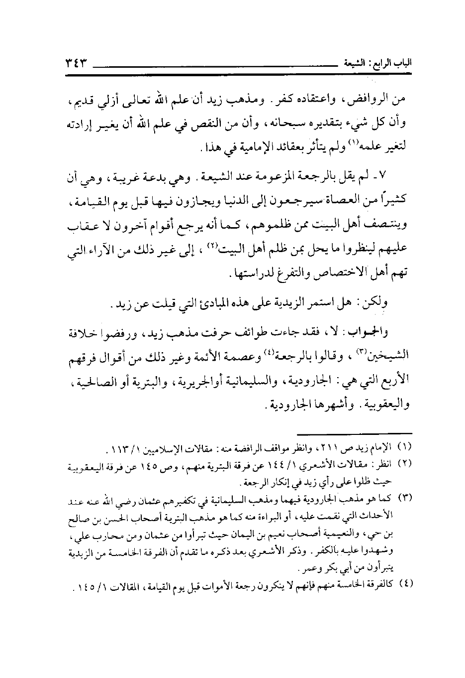 (¬2) انظر مقالات الأشعرية ج1 ص 144 عن الفرقة البترية منهم، وص 145 عن فرقة اليعقوبية حيث ظلوا على رأى زيد في إنكار الرجعة.