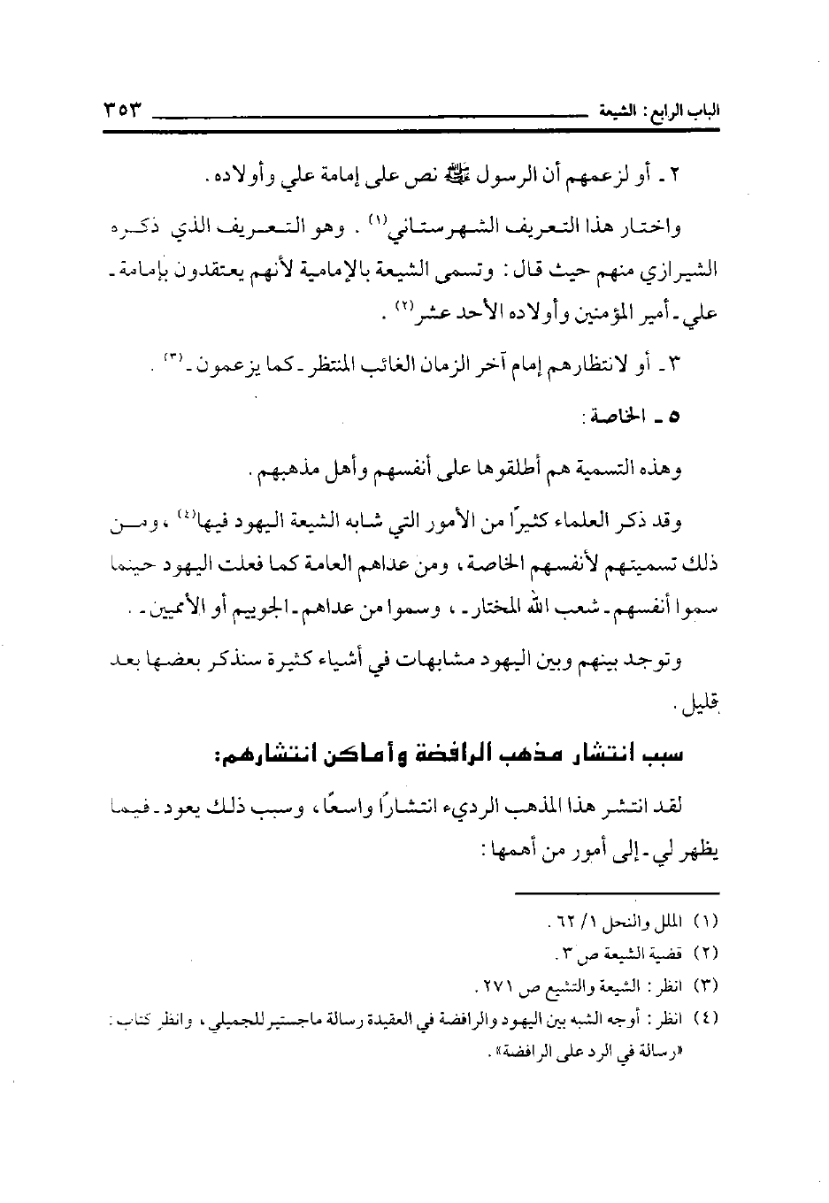 (¬4) انظر (أوجه الشبه بين اليهود والرافضة في العقيدة) رسالة ما جستير للرحيلي، وانظر كتاب (رسالة في الرد على الرافضة) .