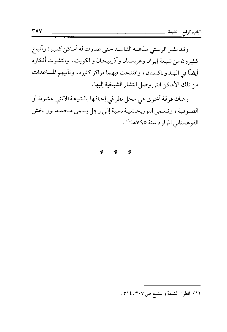 وهناك فرقة أخرى هي محل نظر في إلحاقها بالشيعة الاثني عشرية أو الصوفية، وتسمى النوربخشية نسبة إلى رجل يسمى محمد نور بخش القوهستاني المولود سنة 795 هـ (¬1) .