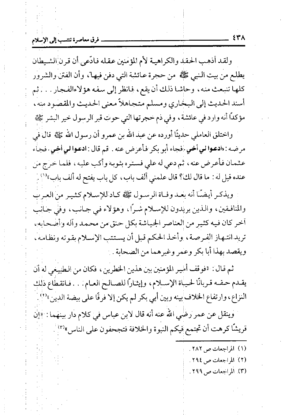 ويذكر أيضاً أنه بعد وفاة الرسول صلى الله عليه وسلم كاد للإسلام كثير من العرب والمنافقين، والذين يريدون للإسلام شراً، وهؤلاء في جانب، وفي جانب آخر كان فيه كثير من العناصر الجياشة بكل حنق من محمد وآله وأصحابه، تريد انتهاز الفرصة، وأخذ الحكم قبل أن يستتب الإسلام بقوته ونظامه، ويقصد بهذا أبا بكر وعمر وغيرهما من الصحابة.