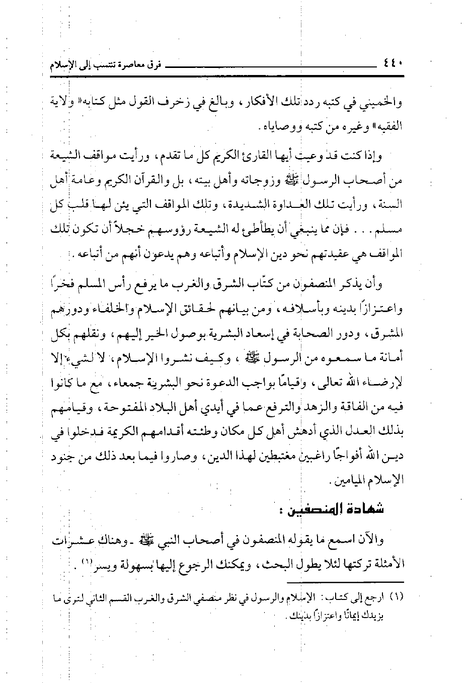 (¬1) ارجع إلى كتاب ((الإسلام والرسول في نظر منصفي الشرق والغرب القسم الثاني لترى ما يزيدك إيماناً واعتزازاً بدينك.