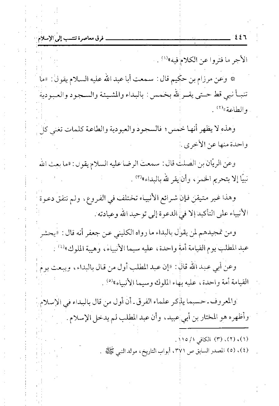 ومن تمجيدهم لمن يقول بالبداء ما رواه الكليني عن جعفر أنه قال: ((يحشر عبد المطلب يوم القيامة أمة واحدة، عليه سيما الأنبياء، وهيبة الملوك)) (¬4) .