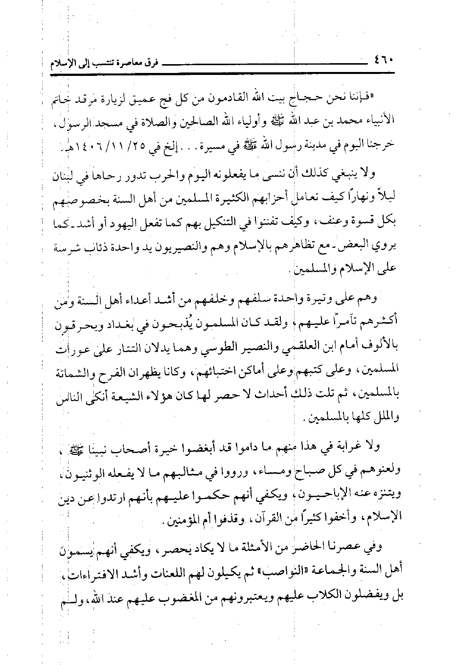 ((فإننا نحن حجاج بيت الله القادمون من كل فج عميق لزيارة مرقد خاتم الأنبياء محمد بن عبد الله صلى الله عليه وسلم وأولياء الله الصالحين والصلاة في مسجد الرسول، خرجنا اليوم في مدينة رسول الله صلى الله عليه وسلم في مسيرة ... إلخ في25/11/1406هـ.