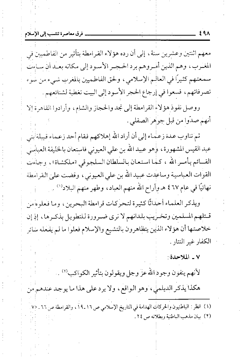 (¬1) انظر الباطنيون والحركات الهدامة في تاريخ الإسلامي ص 16-19. والقرامطة ص 66- 70.