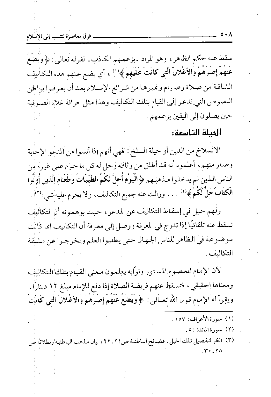 (¬3) انظر لتفصيل تلك الحيل: فضائح الباطنية ص 21- 22، وبيان مذهب الباطنية وبطلانه ص 25-30.