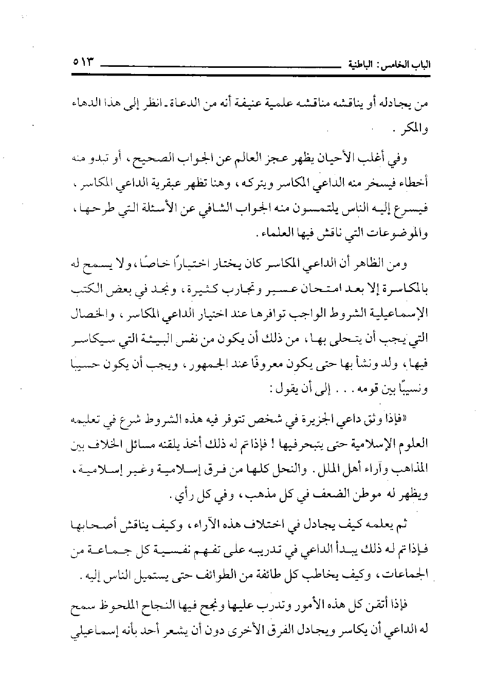 فإذا أتقن كل هذه الأمور وتدرب عليها ونجح فيها النجاح الملحوظ سمح له الداعي أن يكاسر ويجادل الفرق الأخرى دون أن يشعر أحد بأنه إسماعيلي