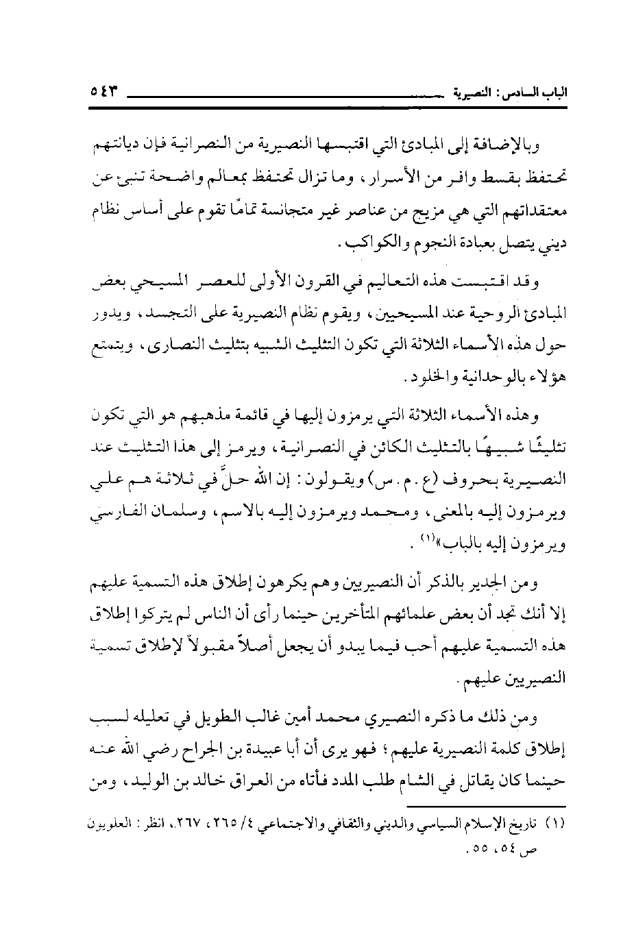 (¬1) تاريخ الإسلام السياسي والديني والثقافي والاجتماعي 4/265، 267، انظر: العلويون ص 54، 55.