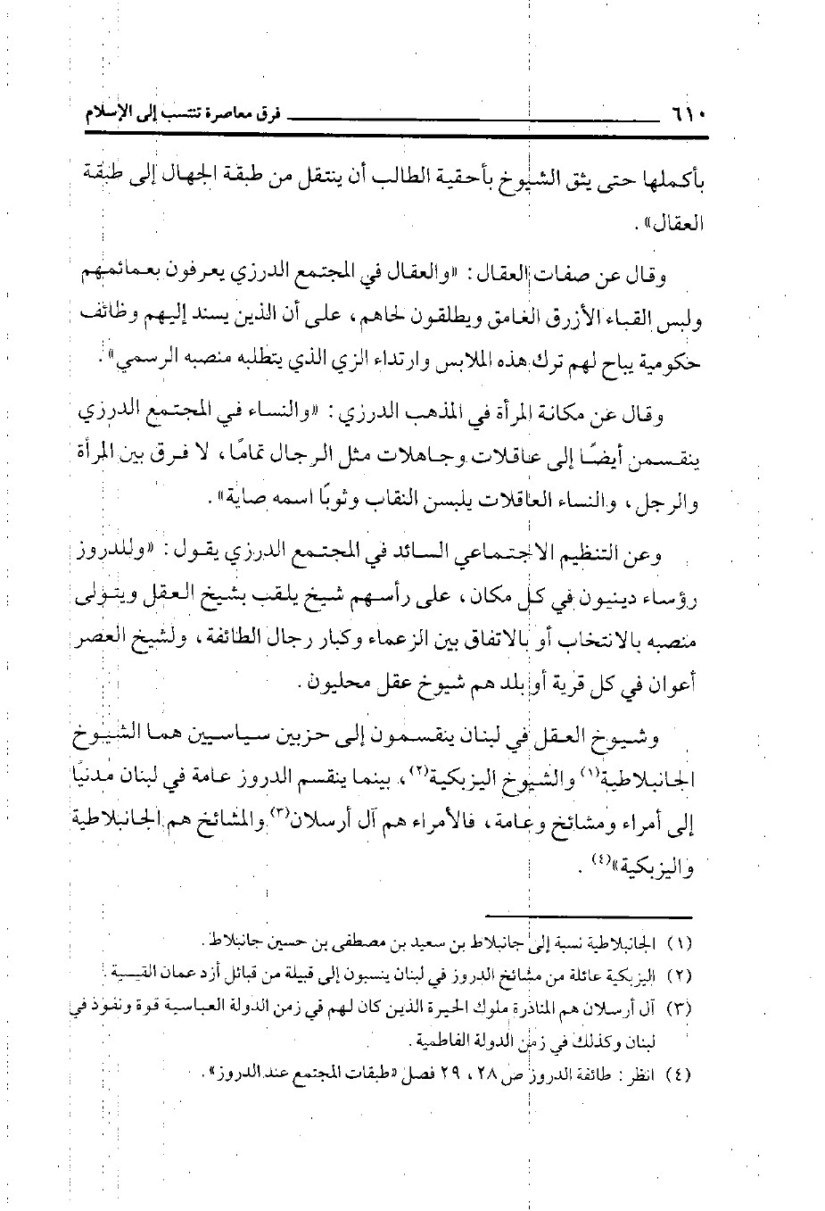 (¬4) انظر: طائفة الدروز ص 28، 29 فصل ((طبقات المجتمع عند الدروز)) .