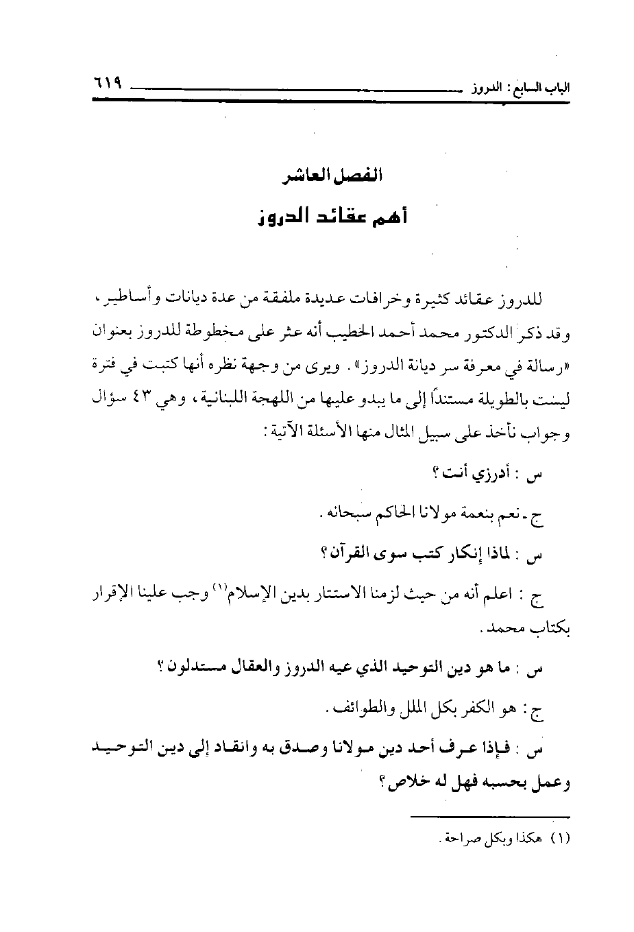 س: ما هو دين التوحيد الذي عليه الدروز والعقال مستدلون؟
