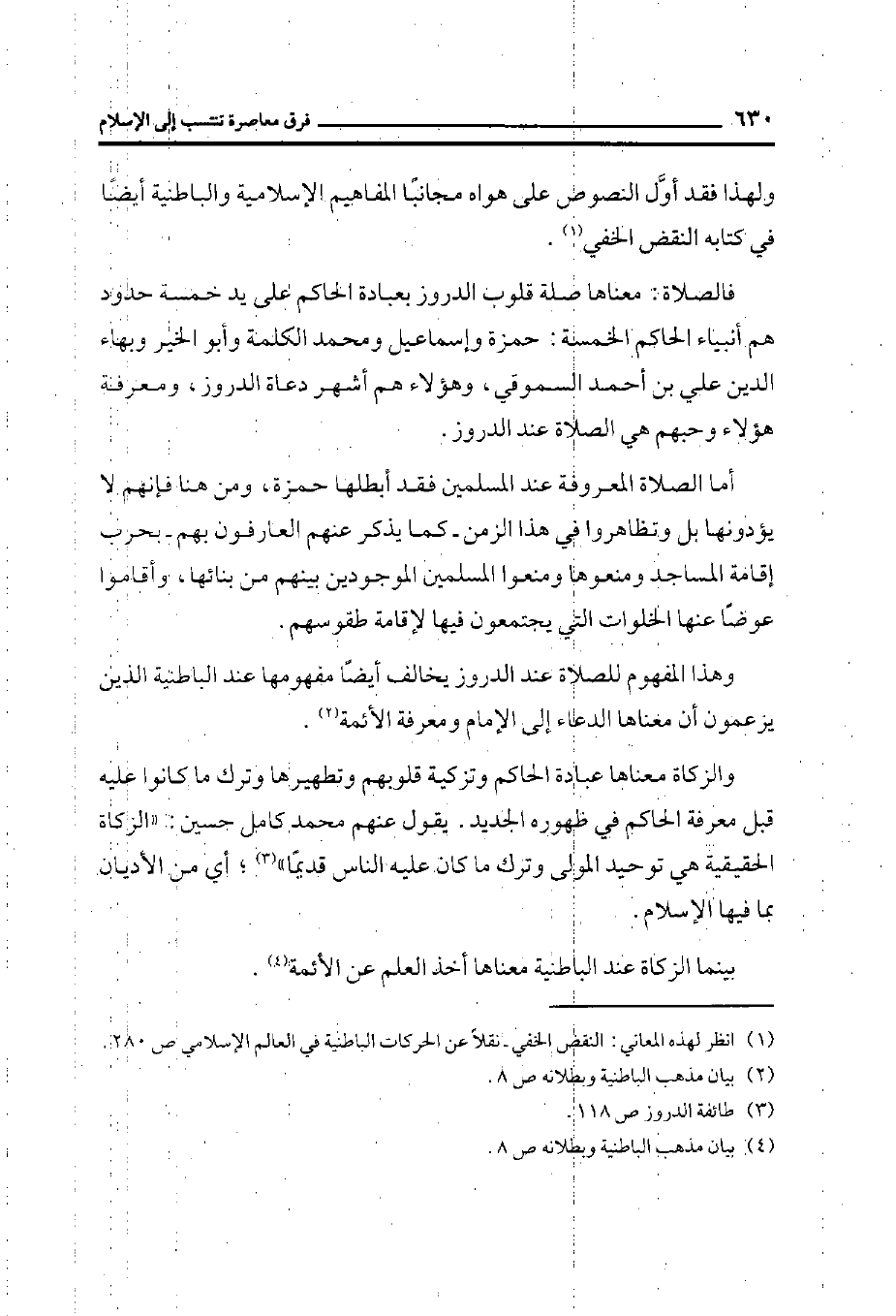 وهذا المفهوم للصلاة عند الدروز يخالف أيضاً مفهومها عند الباطنية الذين يزعمون أن معناها الدعاء إلى الإمام ومعرفة الأئمة (¬2) .