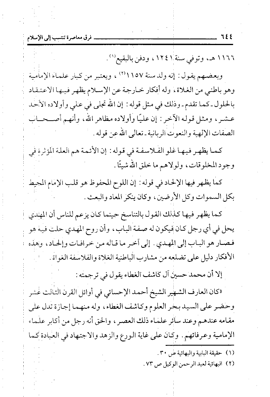 (¬2) البهائية لعبد الرحمن الوكيل ص73.
