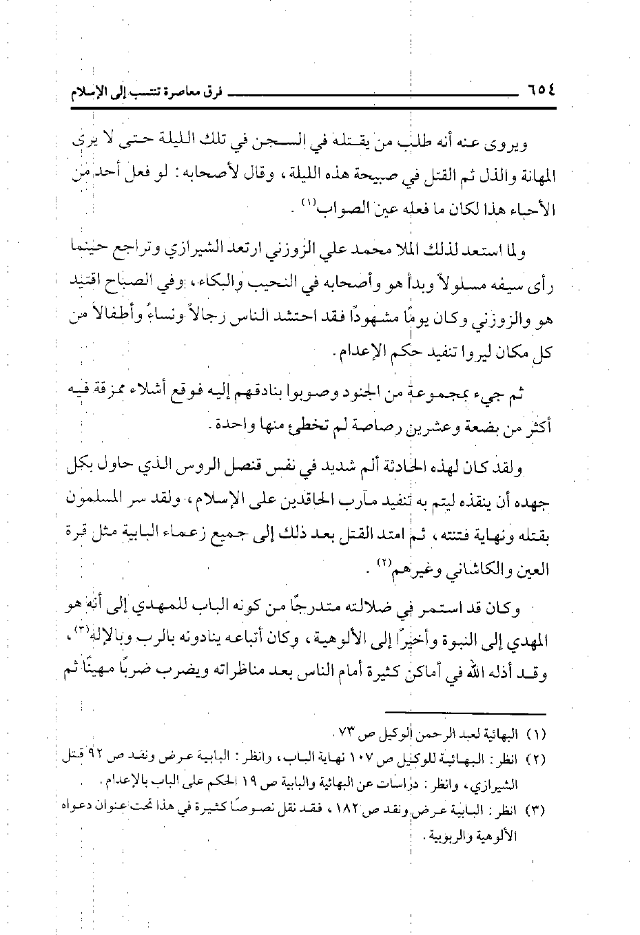 (¬1) البهائية لعبد الرحمن الوكيل، ص73.