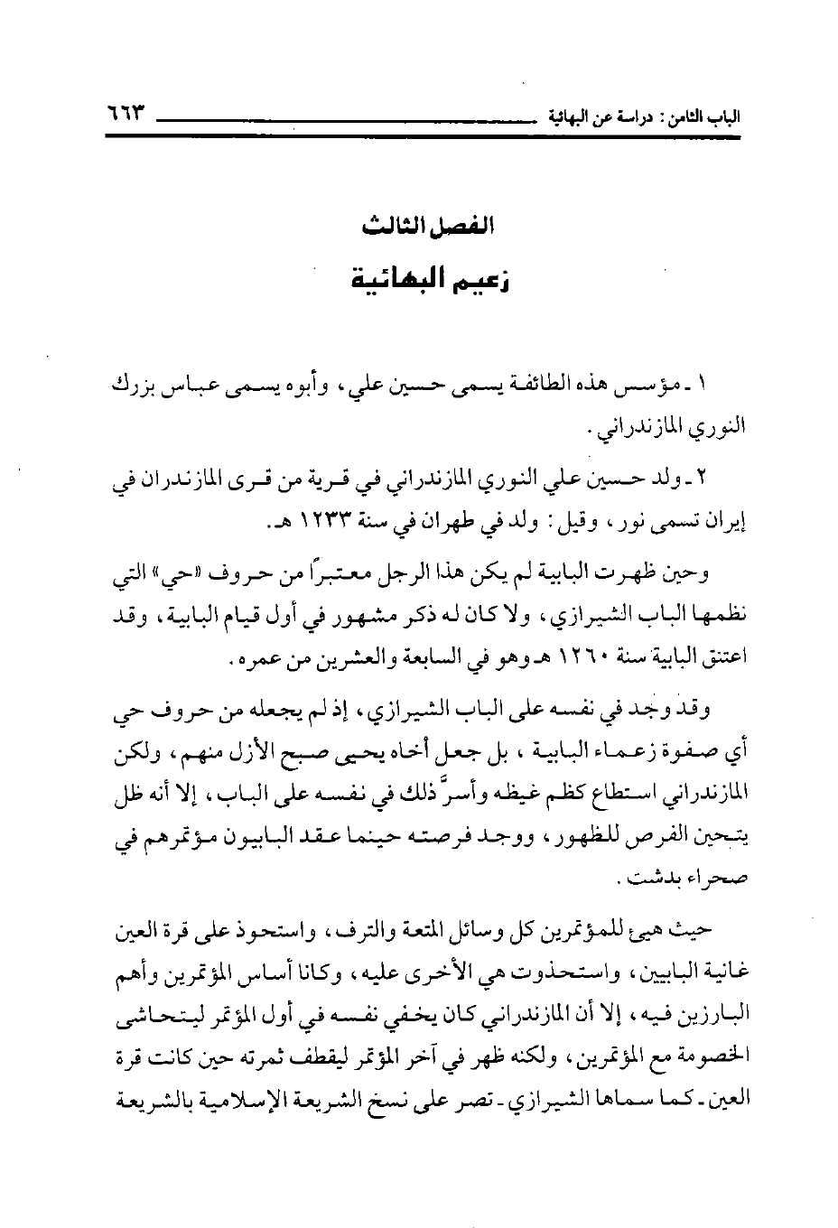 1- مؤسس هذه الطائفة يسمى حسين علي، وأبوه يسمى عباس بزرك النوري المازندراني.