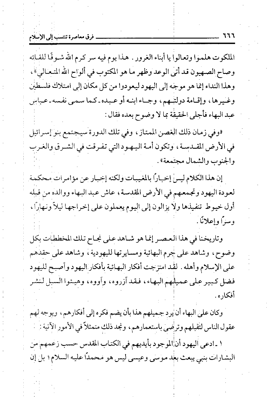 إن هذا الكلام ليس إخباراً بالمغيبات ولكنه إخبار عن مؤامرات محكمة لعودة اليهود وتجمعهم في الأرض المقدسة، عاش عبد البهاء ووالده من قبله أول خيوط تنفيذها ولا يزالون إلى اليوم يعملون على إخراجها ليلاً ونهاراً، وسراً وإعلاناً.