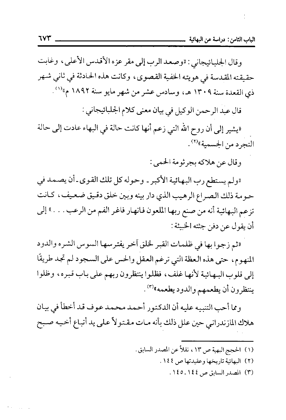 (¬2) البهائية تاريخها وعقيدتها ص 144.