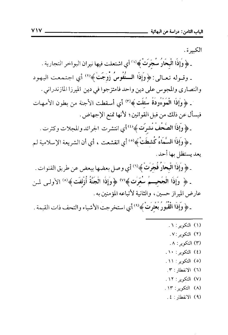 - {وَإِذَا الْجَحِيمُ سُعِّرَتْ} {وَإِذَا الْجَنَّةُ أُزْلِفَتْ} الأولى لمن عارض الميرزا حسين، والثانية لأتباعه المؤمنين به.
