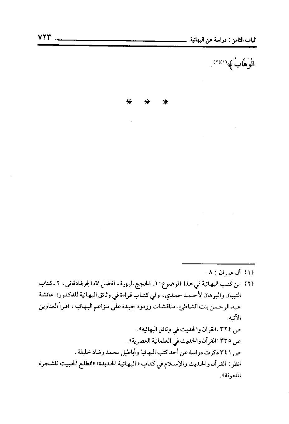 ص341 ذكرت دراسة عن أحد كتب البهائية وأباطيل محمد رشاد خليفة.