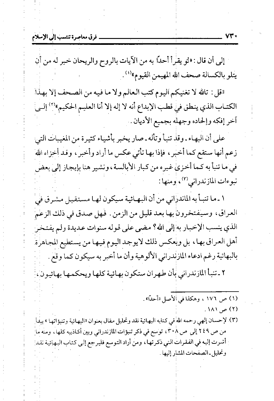 (¬3) لإحسان إلهي رحمه الله في كتابه البهائية نقد وتحليل مقال بعنوان ((البهائية وتنبؤاتها)) يبدأ من ص249 إلى ص 308، توسع في ذكر تنبؤات المازندراني وبين أكاذيبه كلها، ومنه ما أشرت إليه في الفقرات التي ذكرتها، ومن أراد التوسع فليرجع إلى كتاب البهائية نقد وتحليل - الصفحات المشار إليها.