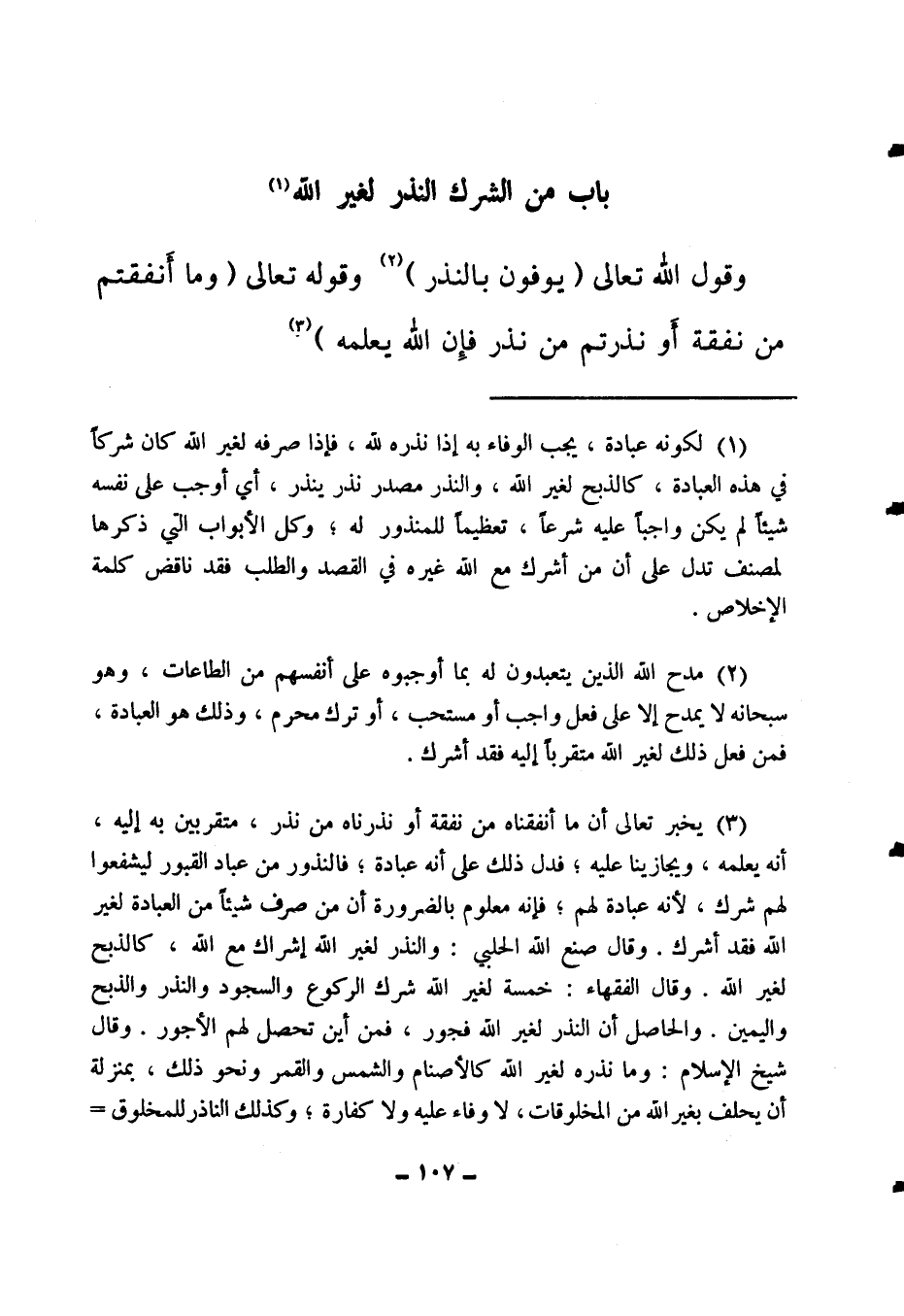 باب من الشرك النذر لغير الله (1)