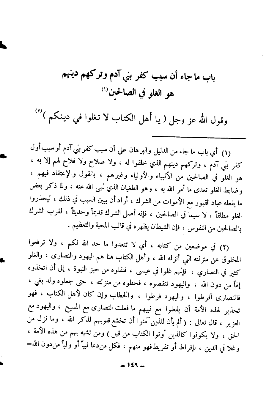 باب ما جاء أن سبب كفر بني آدم وتركهم دينهم هو الغلو في الصالحين (1)