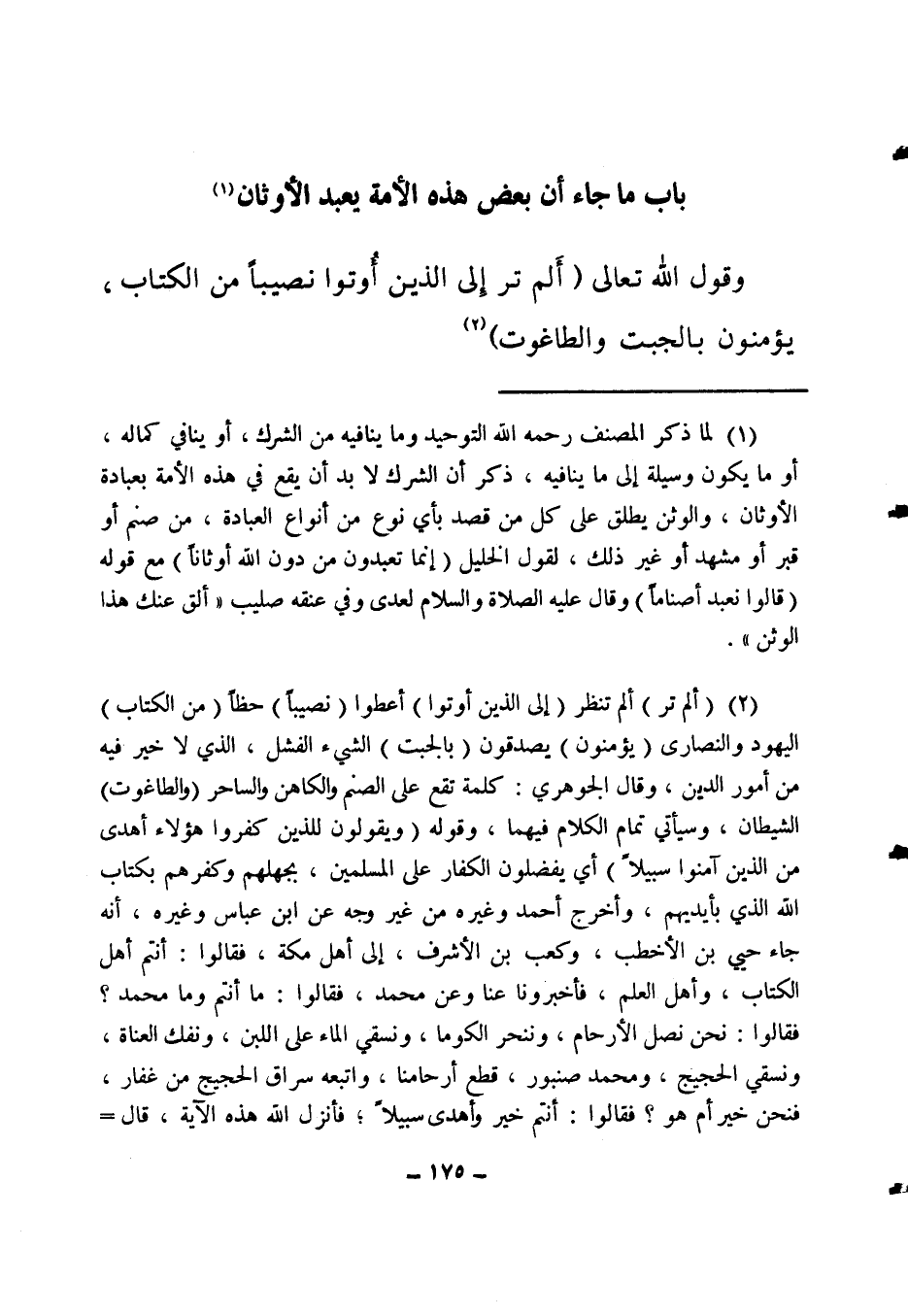 وقول الله تعالى: {أَلَمْ تَرَ إِلَى الَّذِينَ أُوتُوا نَصِيباً مِنَ الْكِتَابِ يُؤْمِنُونَ بِالْجِبْتِ وَالطَّاغُوتِ} 1 (2) .