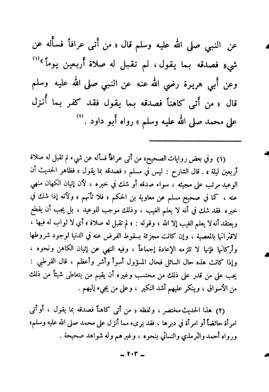 (2) هذا الحديث مختصر، ولفظه: " من أتى كاهنا فصدقه بما يقول، أو أتى امرأة حائضا أو امرأة في دبرها، فقد برئ مما أنزل على محمد صلى الله عليه وسلم " 4. ورواه أحمد والترمذي والنسائي بنحوه وغيرهم، وله شواهد صحيحة.