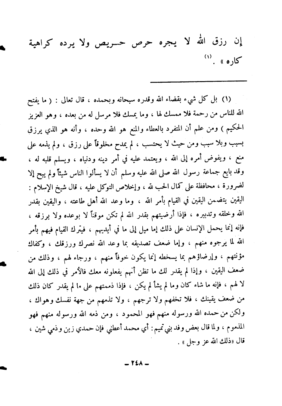 إن رزق الله لا يجره حرص حريص، ولا يرده كراهية كاره (1) ".