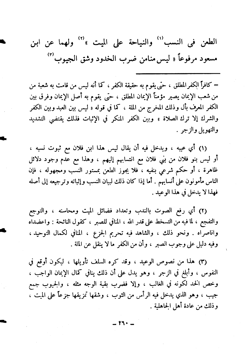 الطعن فى النسب (1) ، والنياحة على الميت (2) "1.