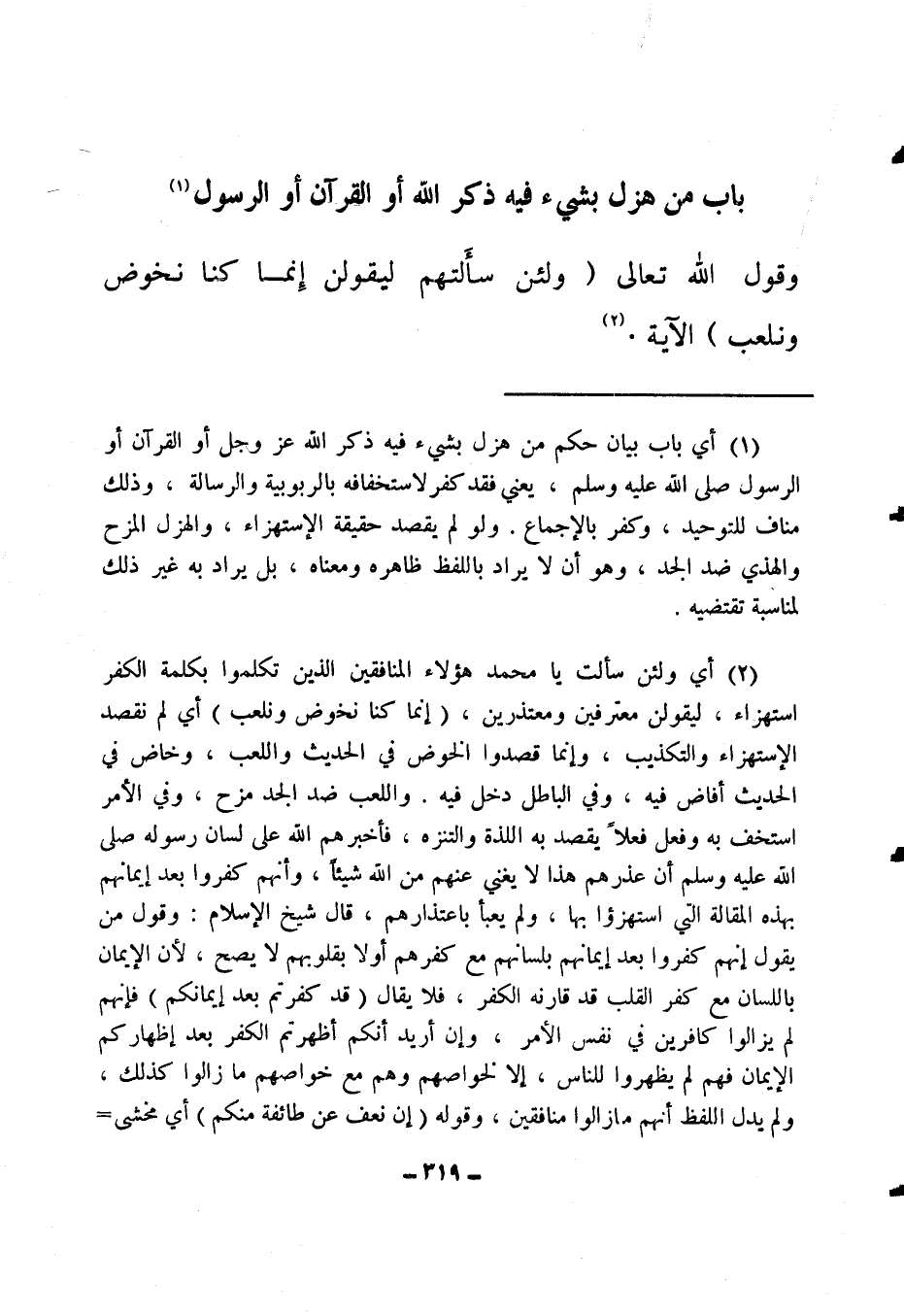 باب من هزل بشيء فيه ذكر الله أو القرآن أو الرسول (1)