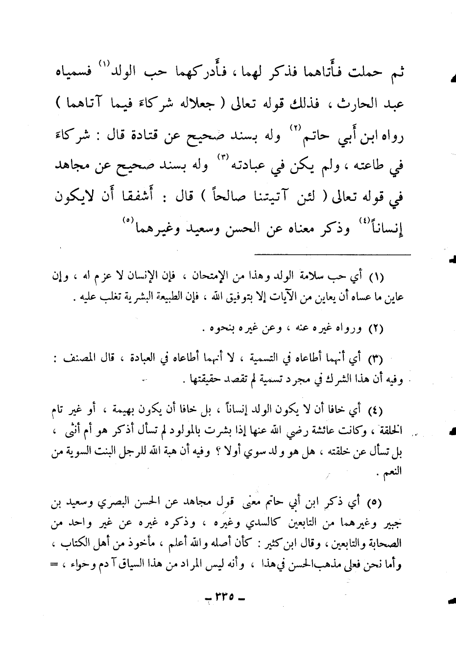 وله بسند صحيح عن مجاهد في قوله تعالى: {لَئِنْ آتَيْتَنَا صَالِحاً} 2 قال: أشفقا أن لا يكون إنسانا (4) ، وذكر معناه عن الحسن وسعيد وغيرهما (5) .