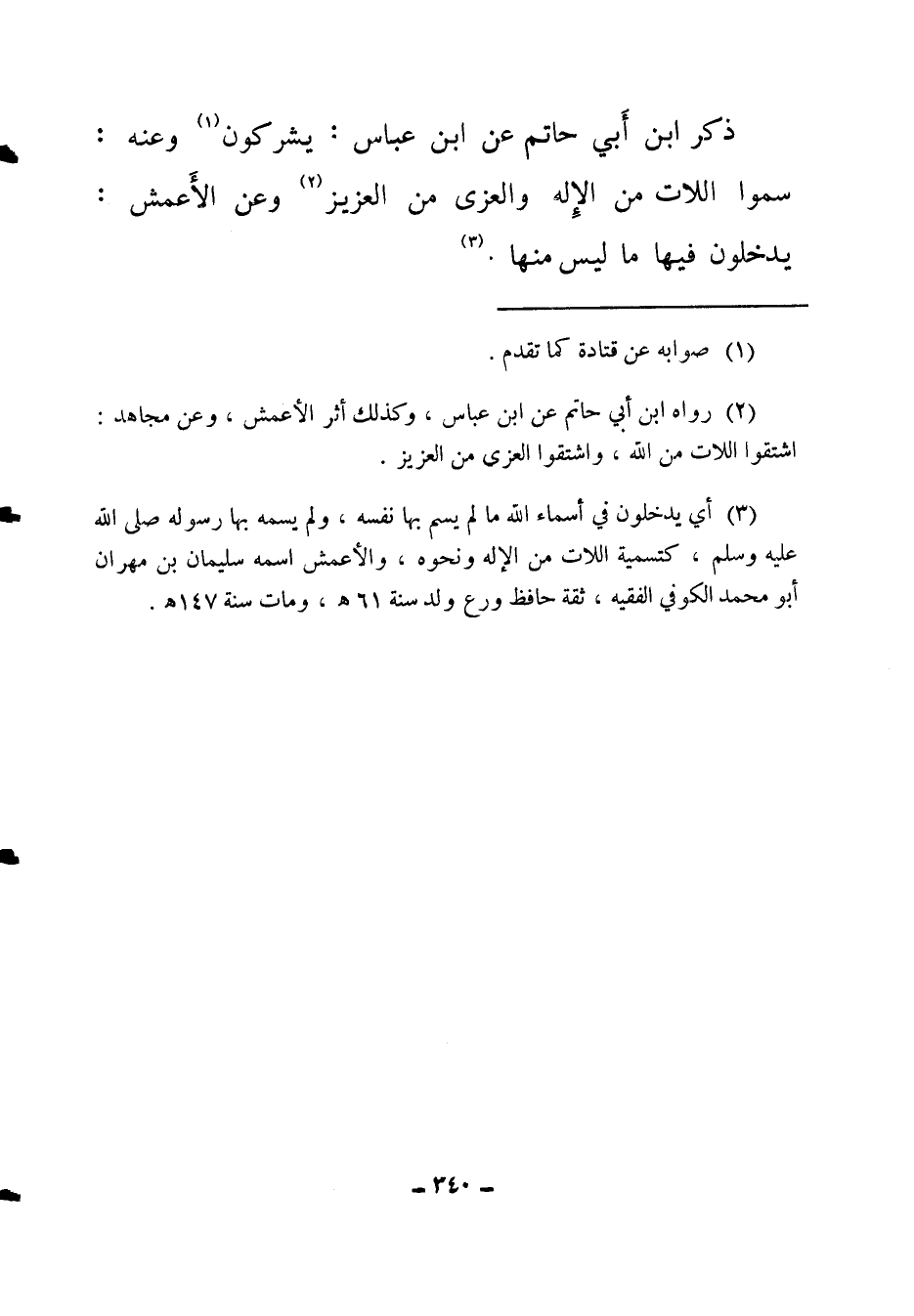 (3) أي يدخلون في أسماء الله ما لم يسم بها نفسه، ولم يسمه بها رسوله صلى الله عليه وسلم كتسمية اللات من الإله ونحوه. والأعمش اسمه سليمان بن مهران أبو محمد الكوفي الفقيه، ثقة حافظ ورع، ولد سنة 61 هـ، ومات سنة 147 هـ.