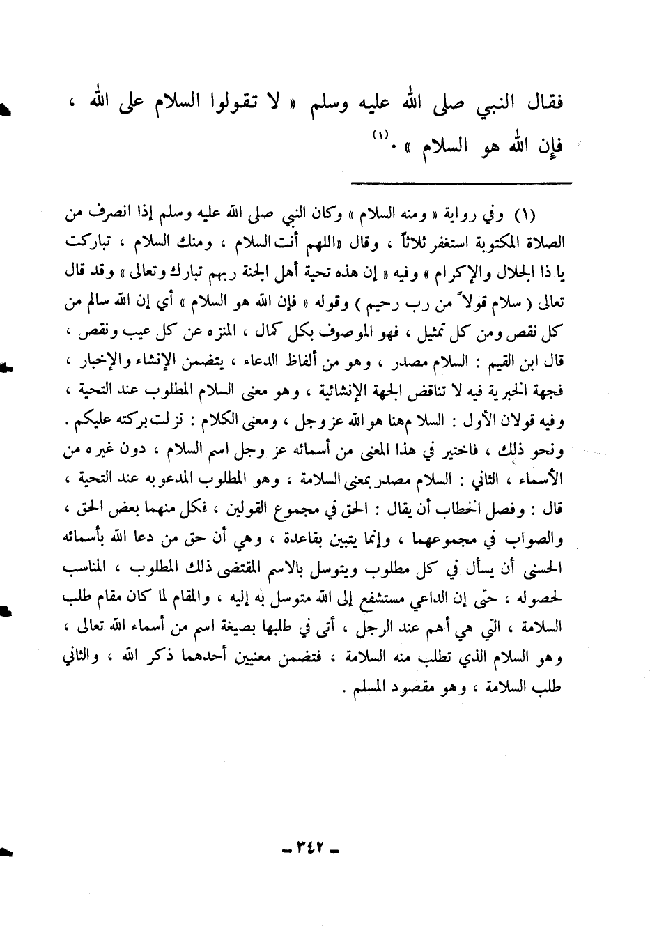 فقال النبي صلى الله عليه وسلم: لا تقولوا السلام على الله، فإن الله هو السلام (1) "1